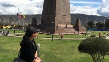 Se retrouver en même temps dans l’hémisphère nord et dans l’hémisphère sud c’est possible… Ici près de Quito, au point 0.00.00 du monde c’est à dire « au milieu du monde ». C’est très étonnant de mettre un pied dans l’hémisphère sud et un dans l’hémisphère. Essayez aussi de vous mettre en équilibre sur la ligne jaune… Drôle…